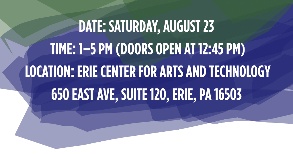 Bring your questions, a notebook, and your creative energy—Artist Empowerment Day is your chance to invest in yourself, learn from experts, and connect with Erie’s vibrant creative community.