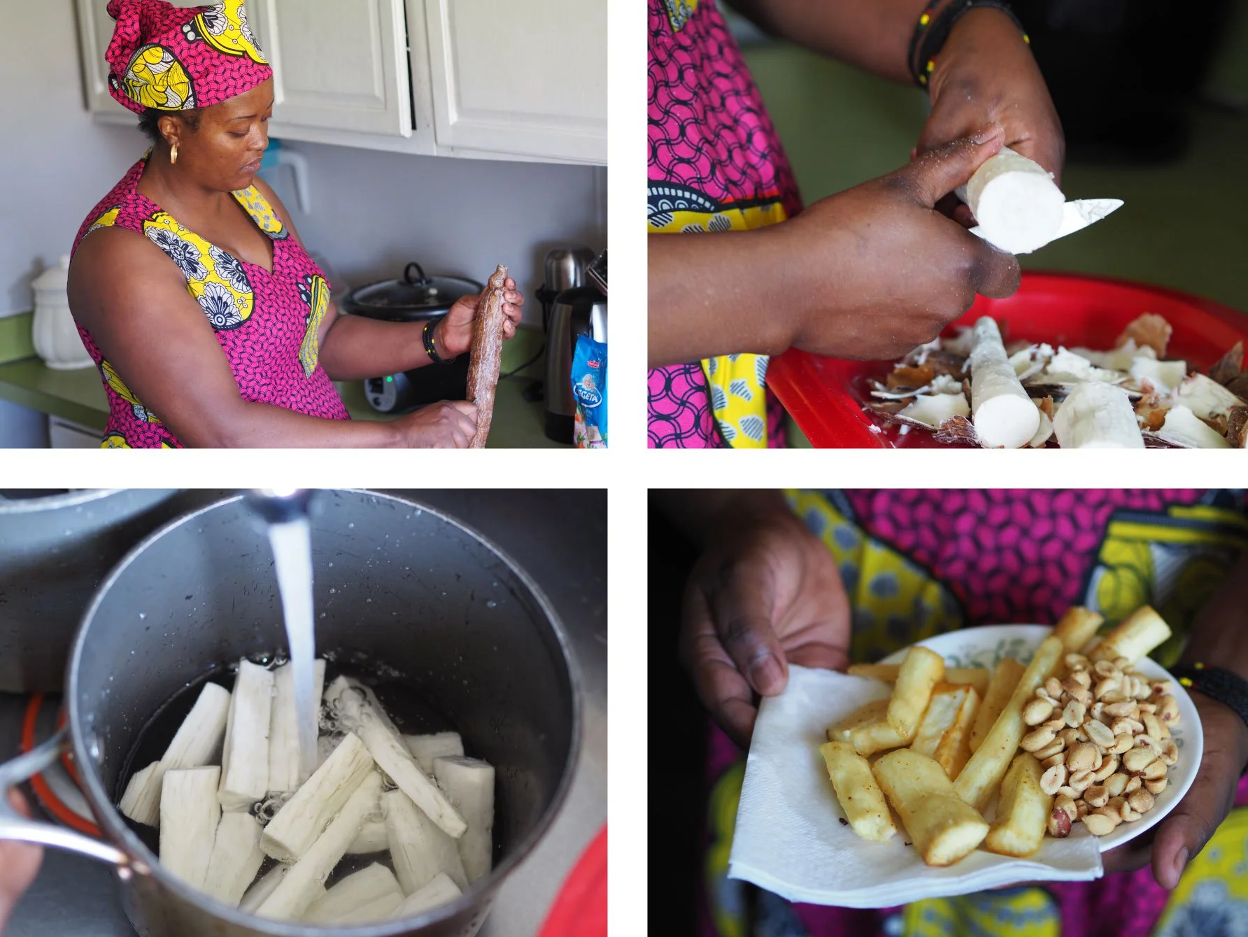 Clarisse says that in Congo it is mostly thought of as a breakfast food, but here it can be served as a snack. “We think of cassava as a man’s food. They feel it gives them strength. It fills you up! If you have it for breakfast you are strong the whole day.”