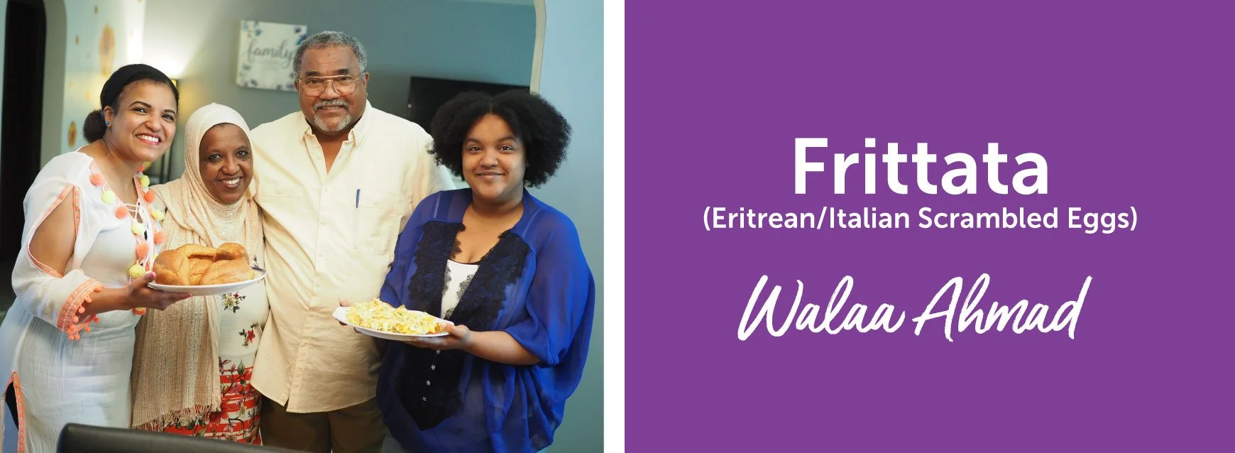 2. Walaa says that this dish comes from the Italian colonization in Eritrea, 1882-1941. Her great-grandparents prepared frittata along with other Eritrean and Italian-influenced dishes. Her mother learned it, and many other dishes, from her parents and have passed them down to her children. Walaa says this food is important to share with her large family and friends because it connects them to their history and memories.