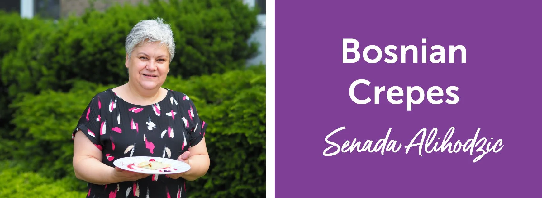 Senada says she has always loved to cook and crepes are one of her favorites. They are popular throughout Europe. She makes them for dessert or whenever she craves something sweet. She said, “They bring back good memories. When my grandma or mom was making a big stack for our family she would pretend not to notice when I stole one. Now I let my kids do the same when I make them!”