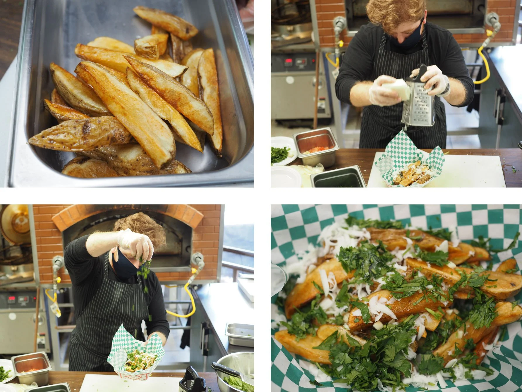 7. Salt the cassava fries and serve with an optional side of peanuts.