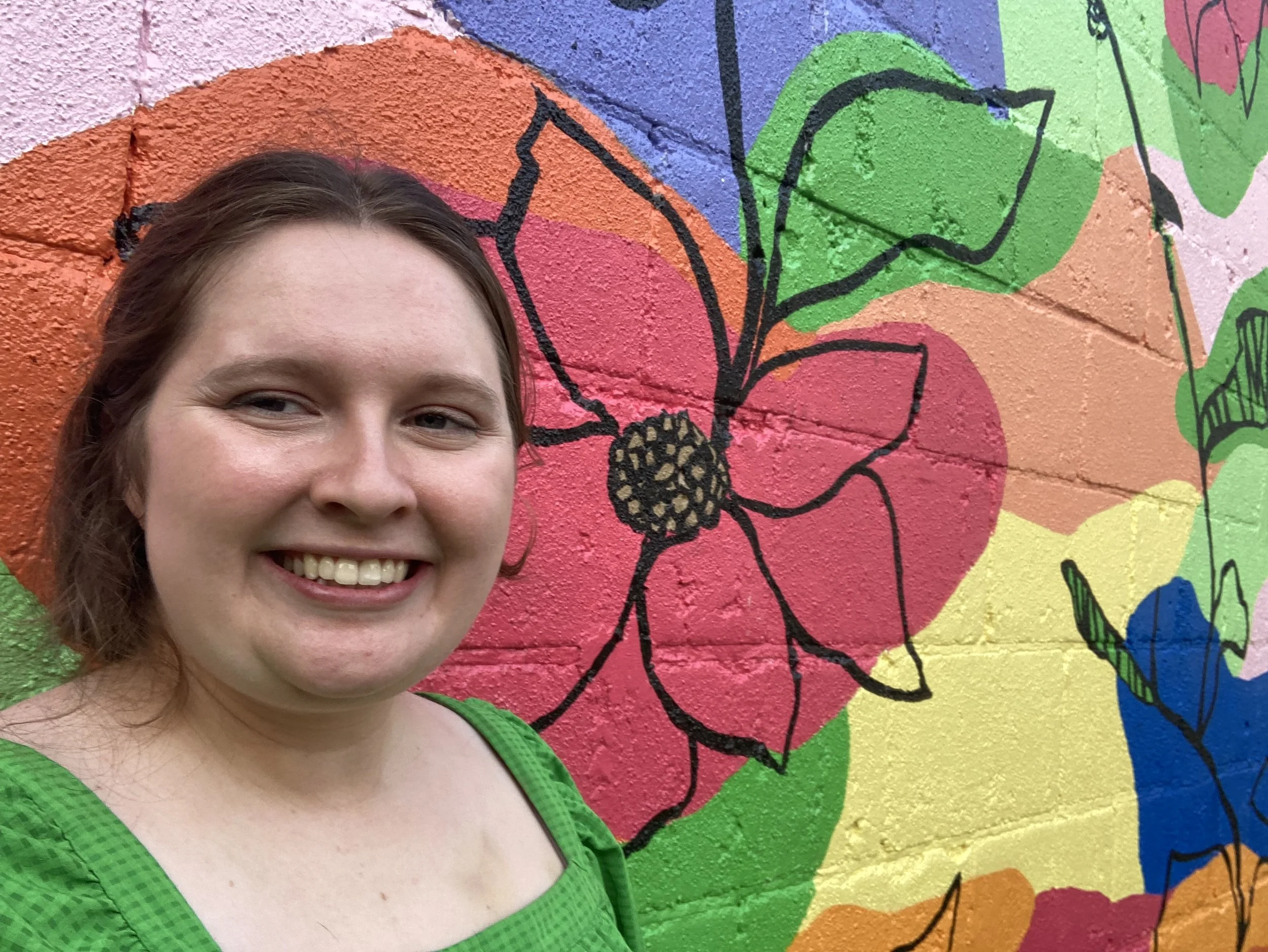 Borchert took her first college art class, Painting I, at the age of 16. She had always loved to create but being an art major at university gave her the tools to create anything she imagined. That first semester, Borchert was accepted to her first juried group show. Thirty plus exhibits later, Borchert continues her goal of creating positive impact in her community. She began creating murals, with the input of the community members. Borchert’s brightly colored murals focused on joy and the representation of the BIPOC community she served.